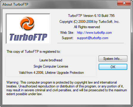 Скачать программу TurboFTP 6.10 Build 795 (6,21 МБ):