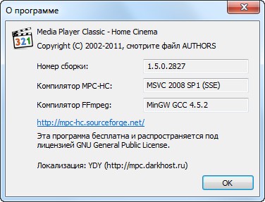 Скачать программу Media Player Classic Home Cinema 1.5.0.2827 Stable x86 (4,89 МБ):