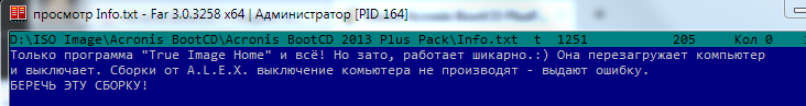Как писал выше, думал, это баг разрабов и уже свыкся с ним, надеясь, что в следующей сборке это исправят. Но, когда попробовал отдельно "Acronis True Image", а не в твоей сборке. Тогда всё и стало на свои места. Запись к образу от KpoJIuK: