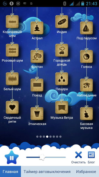 - 6 бинауральных ритмов (сон, концентрация, мечтание,медитация, релаксация).