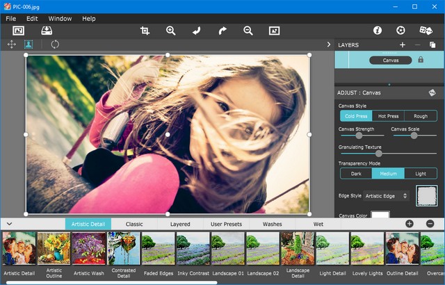 Watercolor Studio - графический редактор для создания естественных, полупрозрачных акварельных эффектов. Программа моментально создает из вашего изображения акварельную картину, а затем позволяет настроить и применить эффекты при помощи набора слайдеров, кистей, слоев, цветовых шаблонов и художественной отделки. И в результате вы получите качественные акварельные краски, наполненные прозрачной и естественной красотой.