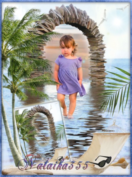 Многослойная рамка с пальмами у моря, красивая арка из камня добавит оригинальности вашей фотографии.