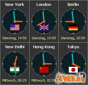 Sharp World Clock - программа, предназначенная для показа мирового времени. Позволяет установить неограниченное число часов в линию или в виде таблицы. Внешний вид часов может иметь различный дизайн, так же часы могут быть цифровыми или обычными, с круглым циферблатом, часы способны показывать флаг страны и изменяемы в размерах от очень маленьких до полноэкранных. Программой поддерживается множество стилей. Настраиваемый список городов каждой страны мира. Вы сможете добавлять, изменять и редактировать города.