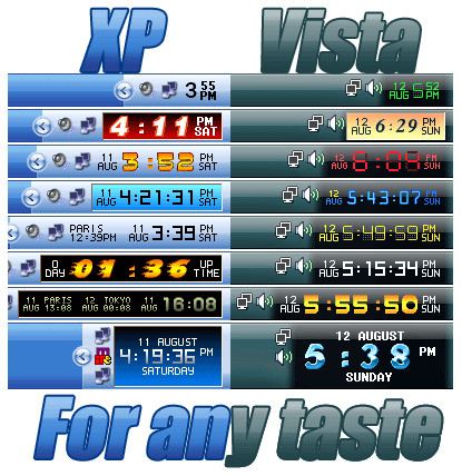 Данная программа преобразит ваши часы в трее, добавит им функциональности и привлекательности. В качестве сигналов данная программа позволяет использовать MP3-файлы. Помимо работы в качестве будильника, программа также может запускать в назначенное время другие приложения, выходить из системы, перезагружать компьютер, выключать его и многое другое. В программе также имеется возможность синхронизации текущего времени с атомными часами. При замещении системных часов, позволяет видеть помимо обычных часов и минут также и секунды, день недели, дату, отсчет обратного времени, показывает время для любой временной зоны. Внешний вид часов можно выбрать из сотен всевозможных вариантов скинов.