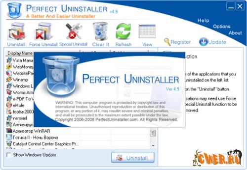 Perfect Uninstaller - четырехуровневый деинсталлятор программ, включая скрытые и "неудаляемые", с плотной зачисткой оставленных ими следов пребывания на компьютере. Делает это в три раза быстрее, чем стандартный компонент Windows, с очисткой оставшихся данных реестра и драйверов, которые оставляют программы после обычной деинсталляции. Попутно очищает поврежденные данные и ошибки реестра, улучшая тем самым производительность, скорость и стабильность работы вашего компьютера. Имеет простой в использовании, дружественный и приятный интерфейс, и возможность предоставления подробной информации о той или иной программе: по иконкам, по списку, по деталям.