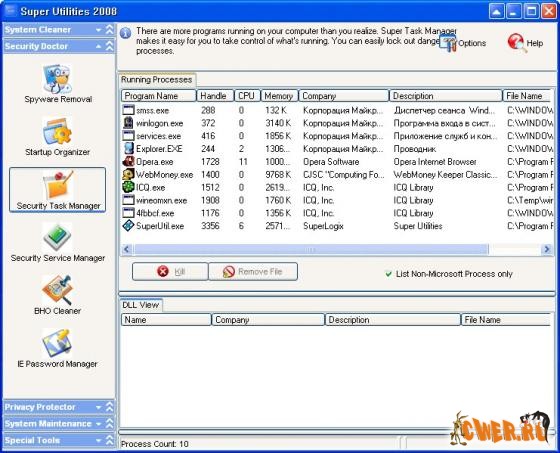 Super Utilities - это сборник полезных утилит от SuperLogix при помощи которых вы сможете наладить, очистить и ускорить работу своей операционной системы. Пакет утилит служит для ежедневного использования: поиск и удаление ненужных файлов, очистка и оптимизация системного реестра, менеджер автозагрузки, защита папок, резервное копирование, анализ папок, полезное расширение контекстного меню Проводника, средство для полного удаления ставших ненужными программ, менеджер процессов, IE Privacy Manager и многое другое.
