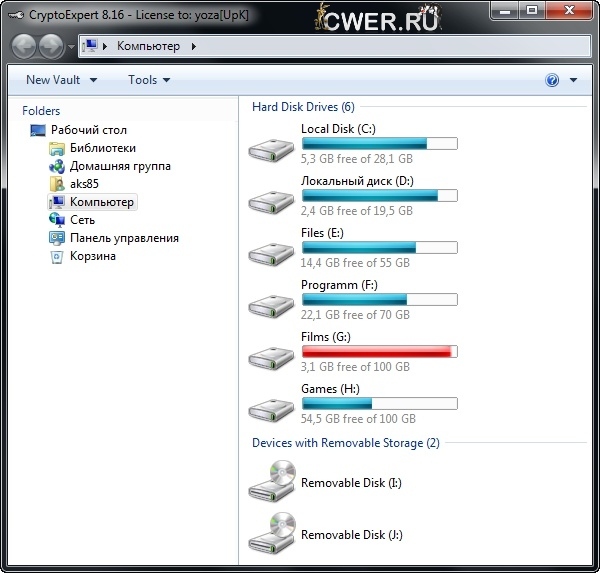 CryptoExpert 2008 Lite - программа для создания виртуальных зашифрованных дисков, которые могут подключаться как обычные съемные диски. Зашифрованные диски выглядят как файлы с расширением ccf...