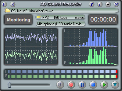AD Sound Recorder - утилита для записи аудио. Поддерживает звук форматов WAV, MP3 и WMA. Позволяет записать звук с микрофона, потоковое аудио из интернета, или музыку, которая проигрывается Winamp, Windows Media Player, Quick Time, Real Player, Flash, games, и т.д. без потери качества. Предусмотрена возможность настроить громкость записи, приостановить или возобновить запись.