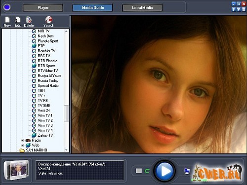 Online TV Live позволяет Вам смотреть более 3645 каналов интернет-телевидения и слушать свободные радиостанции , Игры и Газеты ( 1250) во Всемирной Паутине. Медиагид: 250 Полных Кинофильмов, 1540 трейлеров Кинофильмов, 2500 Видео Музыки которые Вы можете видеть и загружать. Телевизионная база данных каналов является самой большой во всем мире. Никакое дополнительное оборудование не требуется.