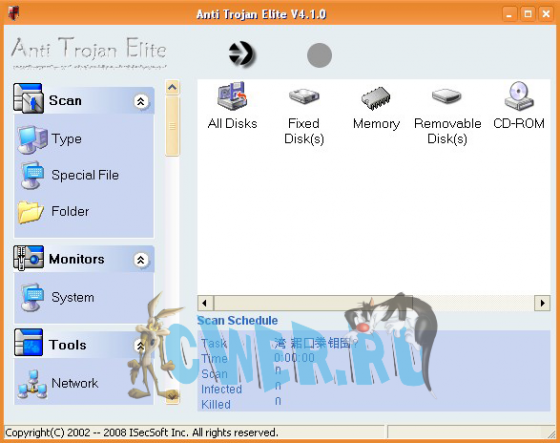 Программа для удаления всевозможных троянов и шпионов из памяти и с жесткого диска компьютера. Утилита Anti-Trojan Elite обеспечивает постоянную защиту компьютера и как только вредоносная программа загрузится, она будет обнаружена, заблокирована и удалена из системы. Сканирует файлы (включая архивы RAR, ZIP, CAB) и память, может работать в режиме постоянного мониторинга системы. Anti-Trojan Elite может обнаруживать более 35000 различных троянов, интернет-червей, кейлоггеров и поддерживает функцию автоматического обновления через Интернет.