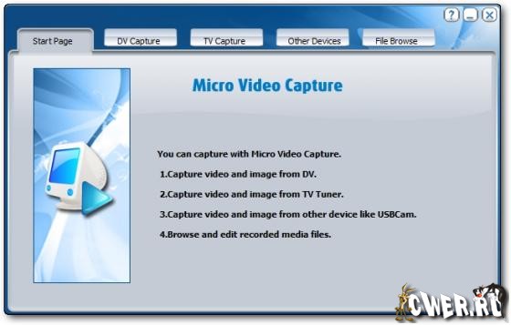 С Micro Video Capture Вы можете сделать запись видео и изображения от веб-камеры, телевизионной карты блока настройки, цифровой камеры и других устройств захвата в режиме реального времени, и все захваченные видео файлы могут быть сохранены как формат AVI при использовании любого кодер-декодера сжатия.