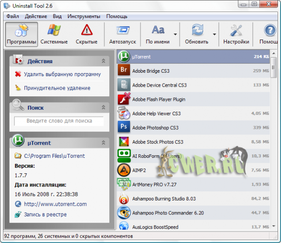 Uninstall Tool - представляет собой аналог апплета "Установка и Удаление программ", но предоставляет пользователю гораздо больше возможностей.