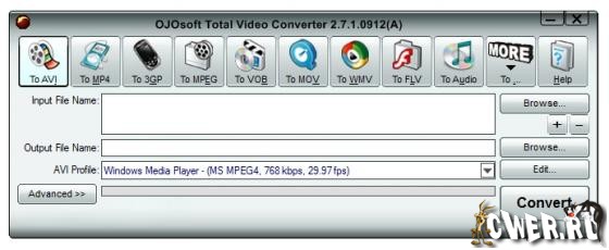 OJOsoft Total Video Converter - очень мощная программа, которая позволяет конвертировать любые видеофайлы в форматы 3gp (формат мобильных телефонов и наладонников), mp4, psp, iPod, swf, flv, DVD, VCD.