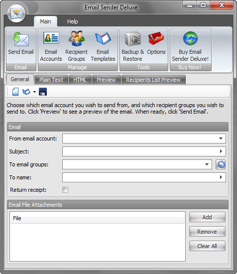 Email Sender Deluxe - лёгкая в использовании программа для массовой рассылки электронной почты и персонализированных новостей. Программа позволяет импортировать информацию как из текстовых файлов, так и из файлов баз данных Oracle, SQL Server, Access, MySQL. В отправления можно вставлять как сами графические изображения так и ссылки на них. В случае неудачной отправки, сообщение автоматически будет отправлено повторно. Используя Email Sender Deluxe, отправка персонализированных новостей и массовой почты вашим клиентам и пользователям становиться простой операцией! Просто выберите своих получателей, напечатайте вашу почту и щелкните по кнопке.