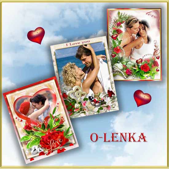 Романтические рамки с сердечками, ангелочками и признаниями в любви ко дню святого Валентина.