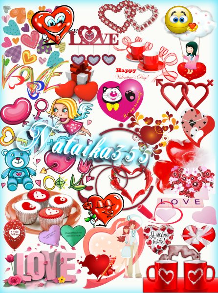 Романтический клипарт: сердечки, ангелочки, надписи и другая атрибутика ко дню святого Валентина.